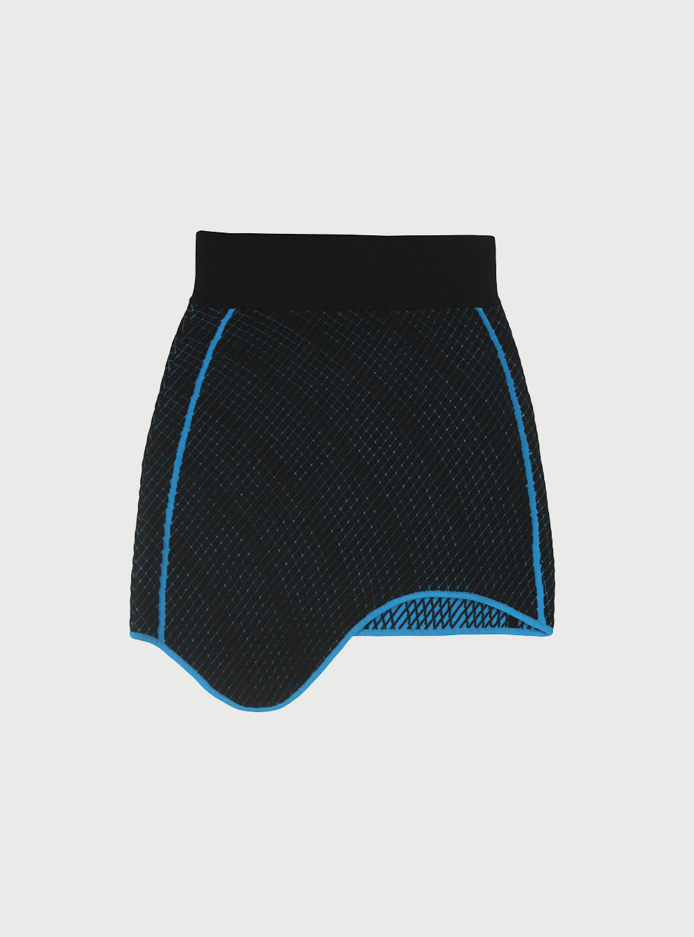 This Morose Pillow Stitch Wavy Mini Skirt showcases PH5’s detailed craftsmanship. Its wavy hem and contrasting outline along the edge of the skirt add a subtle statement to your ensemble.