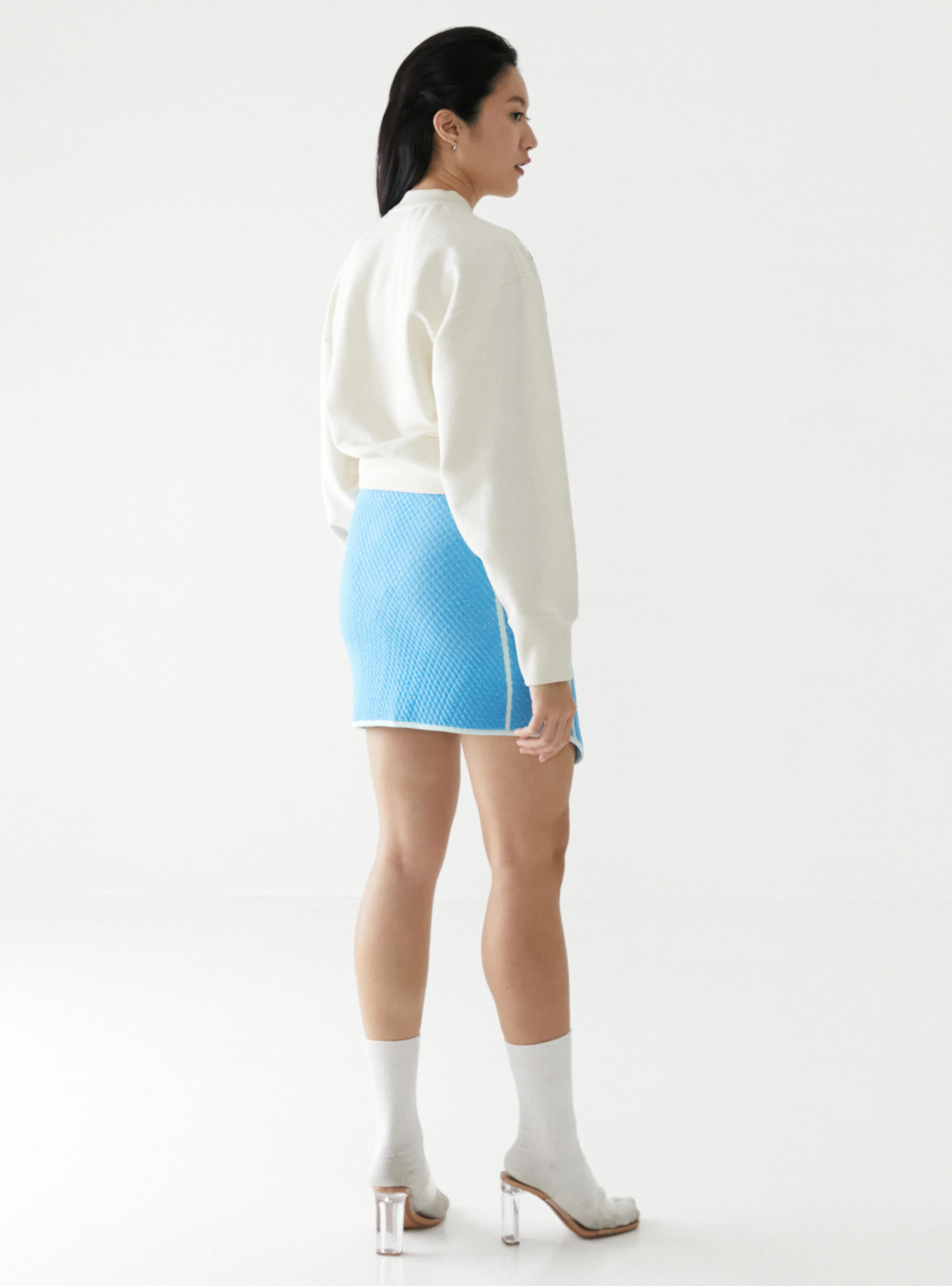 This Morose Pillow Stitch Wavy Mini Skirt showcases PH5’s detailed craftsmanship. Its wavy hem and contrasting outline along the edge of the skirt add a subtle statement to your ensemble.