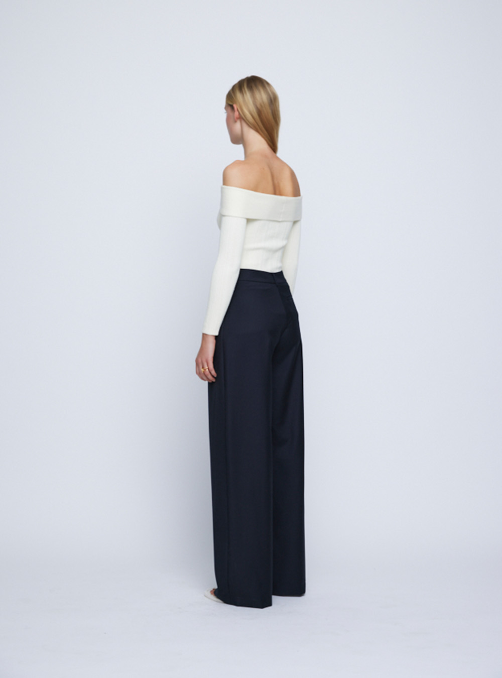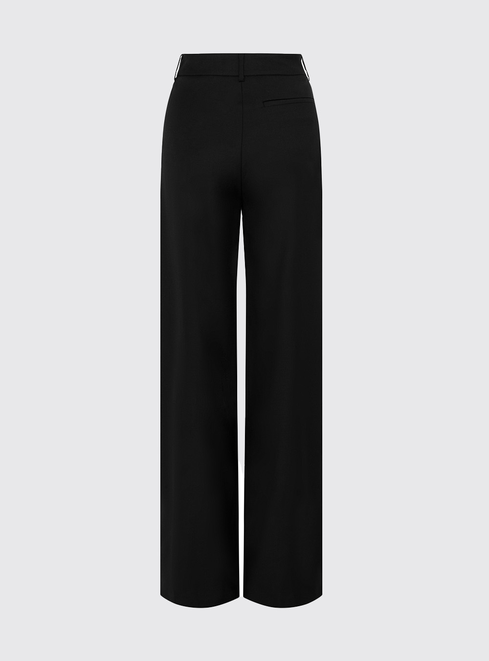 Tailored wide leg wool trousers with coin pocket and contrast buttons. Modern tailoring to serve all your seasonal needs. These straight leg pants are cut in a lightweight 100% wool twill, made with single tucks for ease of movement. Finished with a neat coin pocket and contrast buttons, you can style yours with a slim knit or a matching blazer to build your closet with effortless impact.