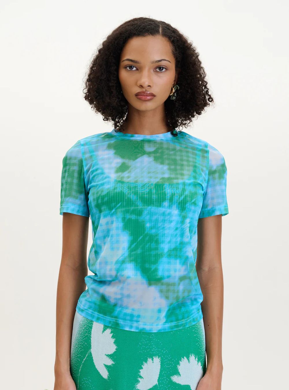 Home » Shop » Nori Flower Print Mesh T in Aqua Green