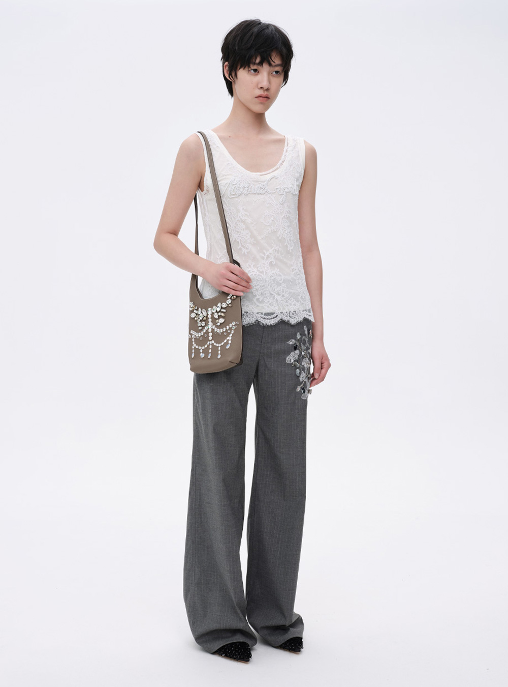 For Spring/Summer 2025, Louis Shengtao Chen presents the dynamic facets of a modern woman, blending melancholy with vivid yet fleeting seduction. Showcasing beauty through a lens of restraint and longing, feminine silhouettes are imbued with contrasting qualities of fragility and timeworn toughness. Through delicate embroidery, silk ruffles and brushed denim, the tension of navigating the world while holding on to the shrapnel of innocence becomes the poem she wears.