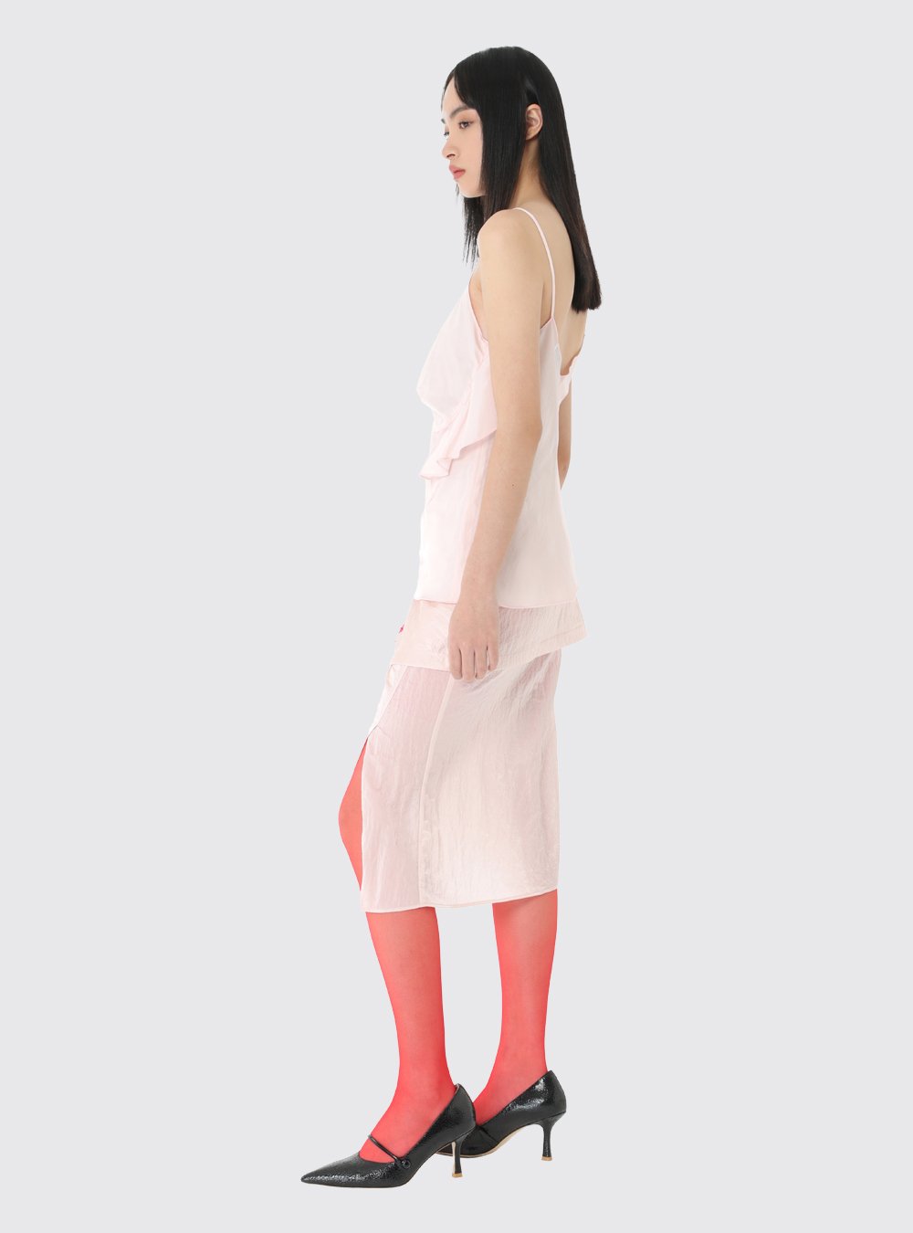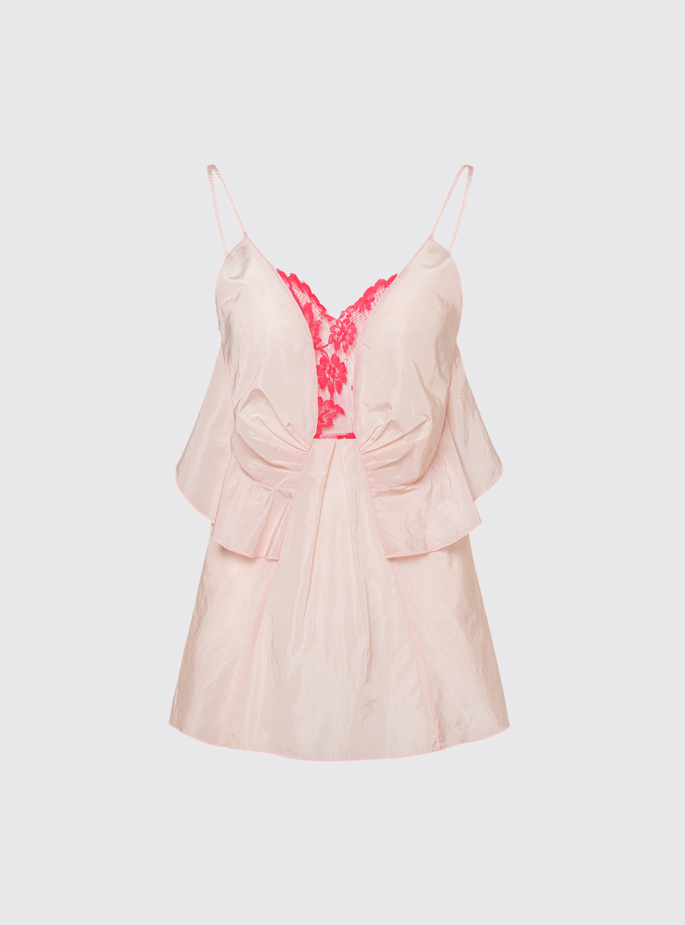 Indulge in feminine allure with the Pink Silk Nylon Moth Top. Crafted from a luxurious blend of silk, this piece exudes elegance with a touch of whimsy. Perfect for those who appreciate delicate sophistication in their wardrobe.
