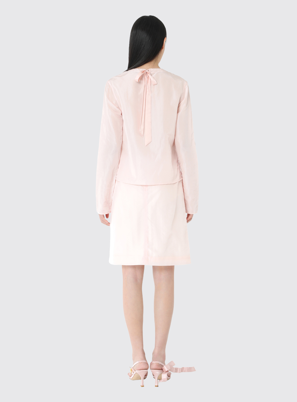 Elevate your style with the Pink Silk Nylon Smocked Top. The intricate smocked detailing adds a playful texture to the luxurious silk and nylon blend, creating a chic and versatile piece that effortlessly transitions from day to night.