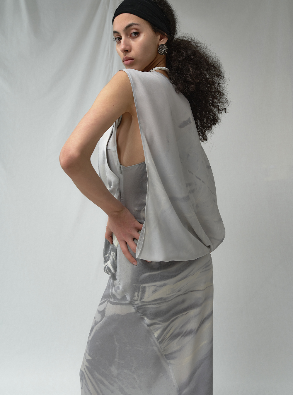 For Fall 2024, Jacques Wei honours the queen of the night—the Epiphyllum oxypetalum, which only blooms for a few summer nights and wilts before dawn. Playing with the notion of a fleeting but dazzling beauty, the collection shifts between the ephemeral and eternal; industrial and organic. Feminine yet feral—rhinestoned lace garments are paired with leopard-printed tops and floral-embroidered skirts; bold brushwork prints on soft fabrics and oversized hardware on minimalist silhouettes evoke a delicate, precious touch.