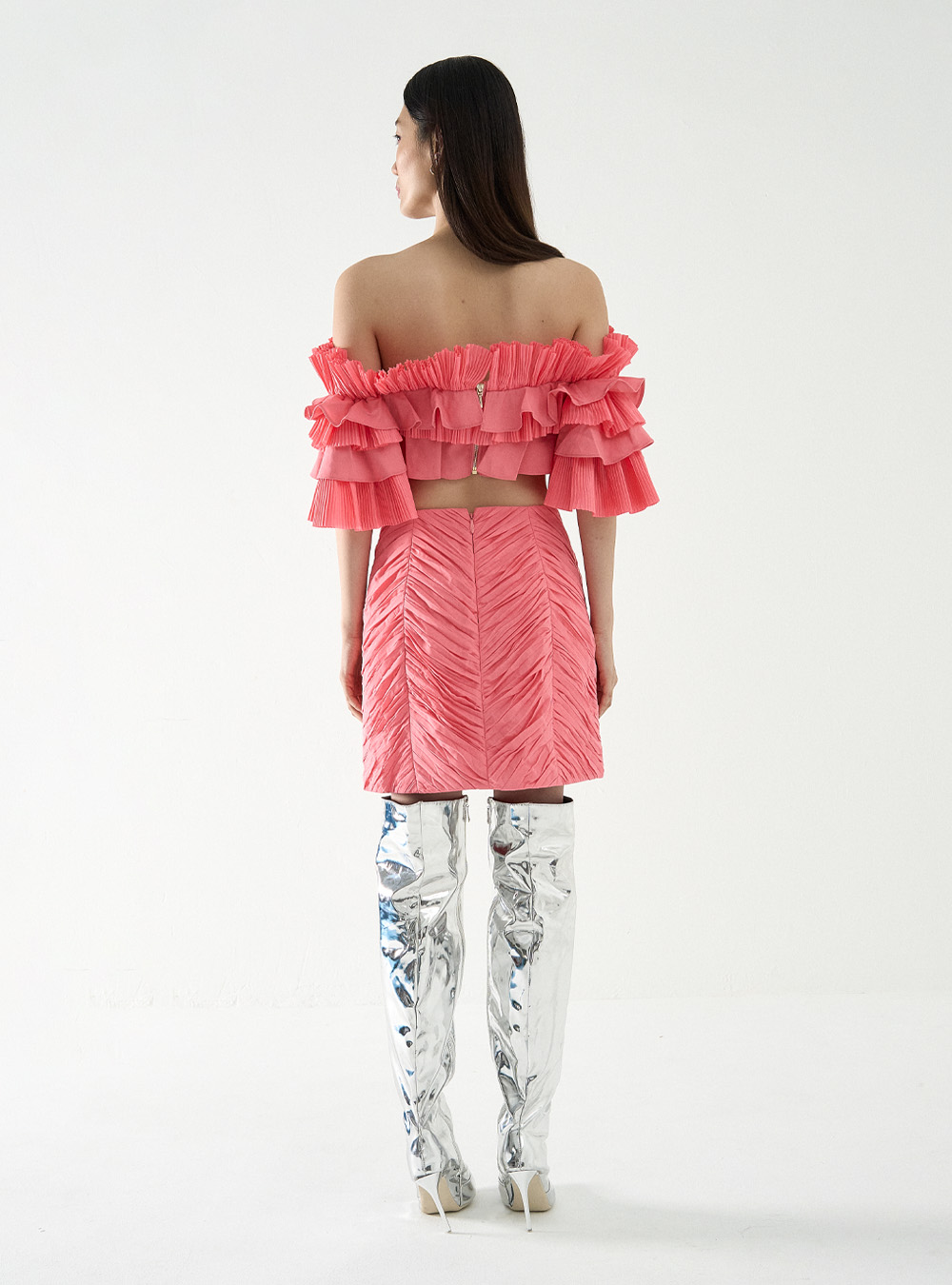A sophisticated take on occasionwear, Acler’s Radford Skirt features chevron pleating and an invisible center-back zipper, making it a chic addition to your collection.
