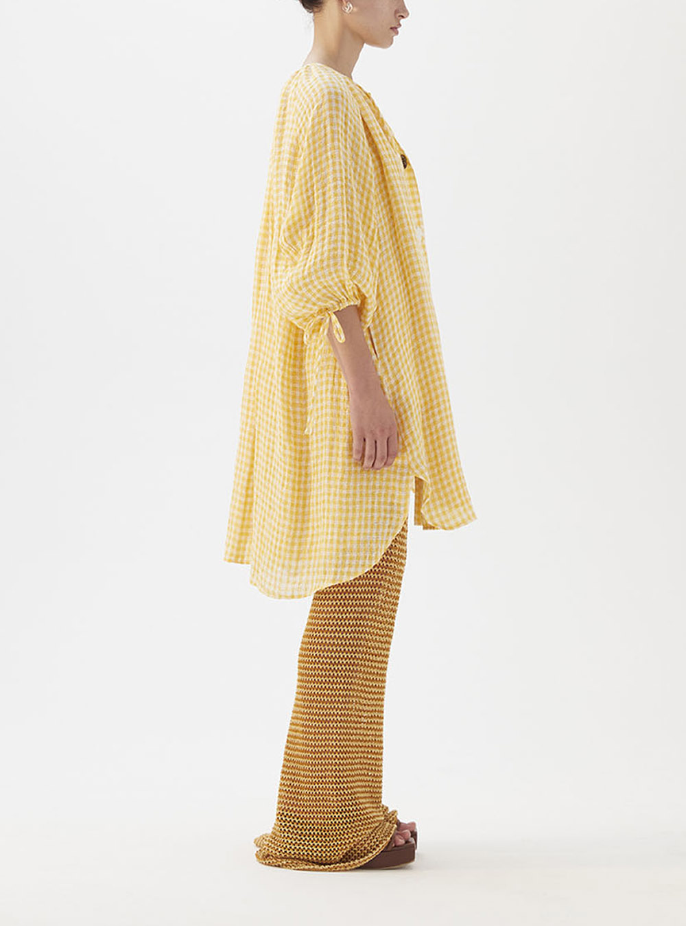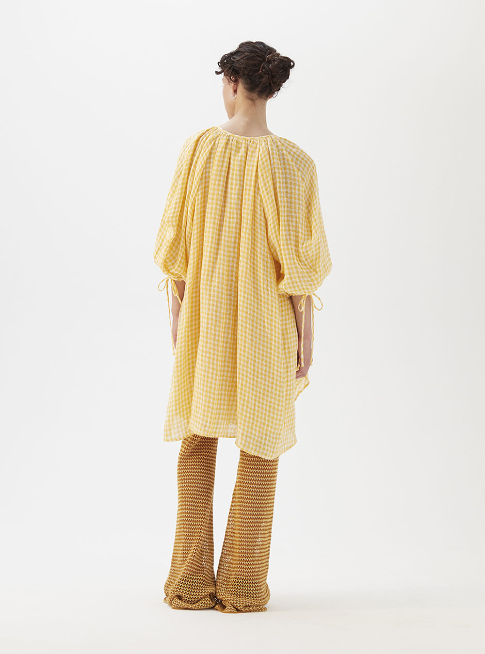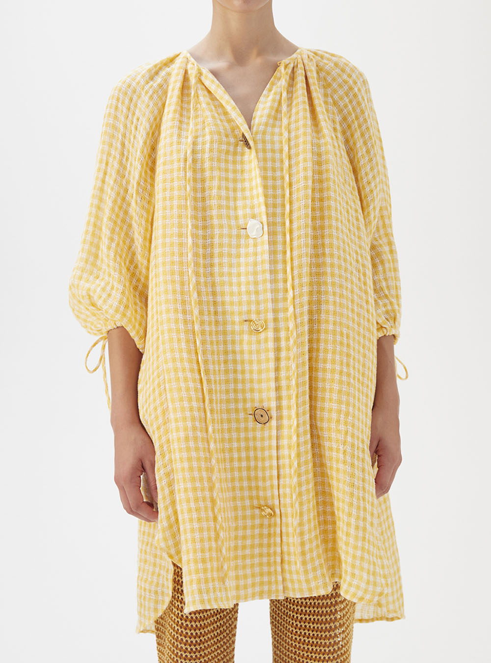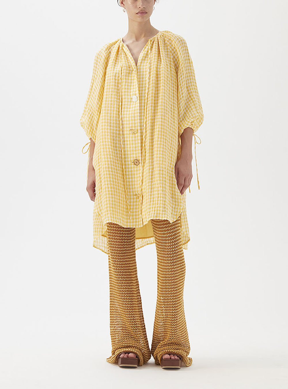Inspired by the fragments of memories and dreams from the designer’s travels between New York and Seoul, Rejina Pyo Spring/Summer 2022 collection features contemporary pieces that come in vivid colours that are touched with softness. Find delicately draped dresses and shirts in sheer fuchsia and sunset orange silk chiffon decorated with an acid green lace in silhouettes from elegant tailoring to chic dresses with softly sculpted shoulders in this collection.
