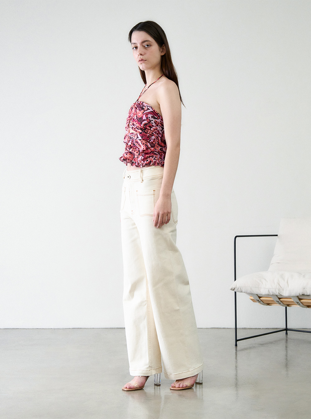 Featuring bold cut-out details, the Sevres Top is a continuation of the brand?s modern feminine essence. A more fitted style, the Sevres Top is designed to be worn from day to night, with playful ruching, cut-out details, and signature ruffles.