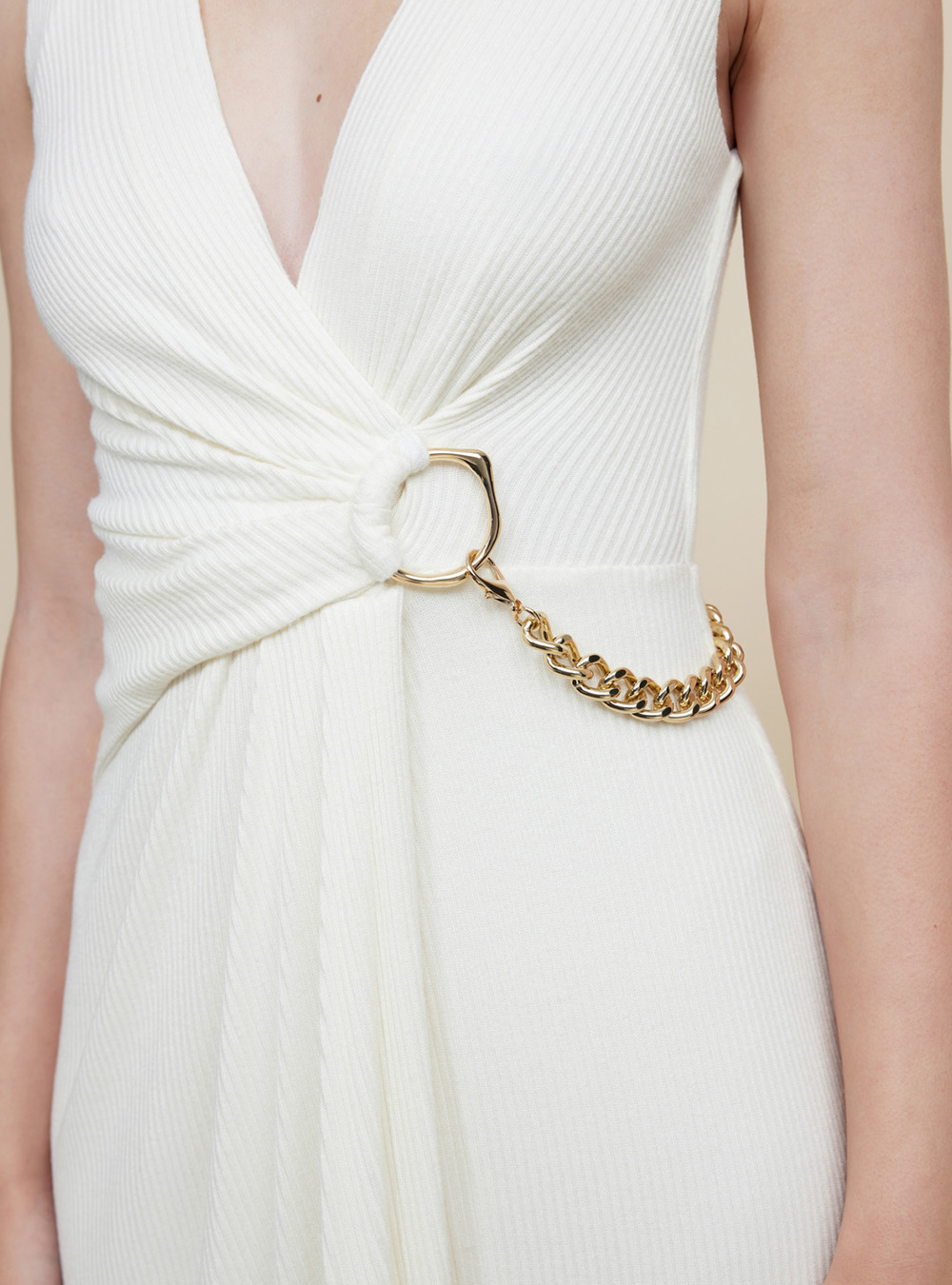 Elevate your staples with Acler’s Stanbro Midi Dress in ivory. Made from a luxe blend of rayon, polyester, nylon, and spandex, its jersey knit drapes seamlessly, while the detachable hardware adds a cross-body detail for added versatility.