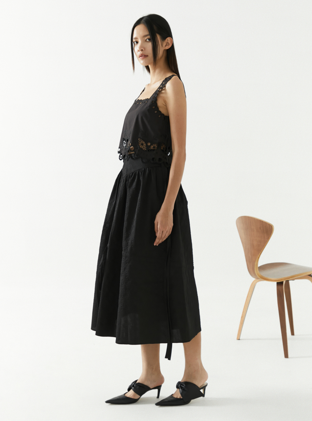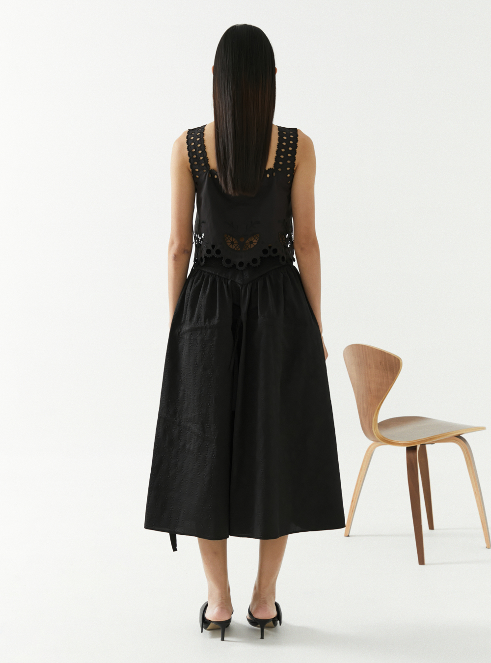 A testament to summer styling, the Sunda is crafted from lightweight cotton poplin and features a more conservative cut-out embroidery, ideal for those who are looking for a casual top that can effortlessly take you from day to night. The top is a cropped fit and pairs well with high-waist jeans.