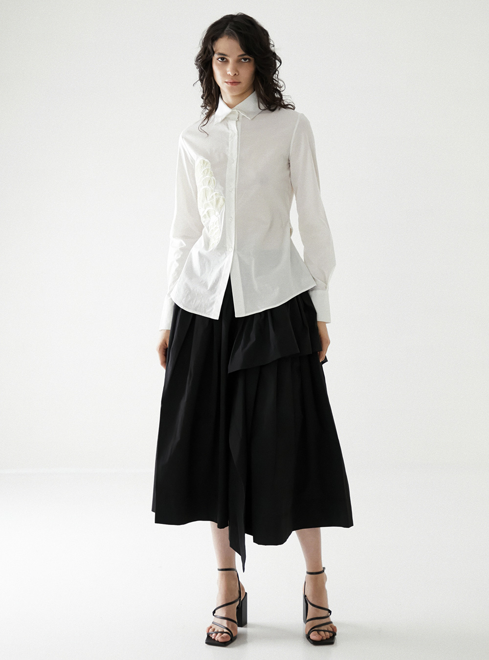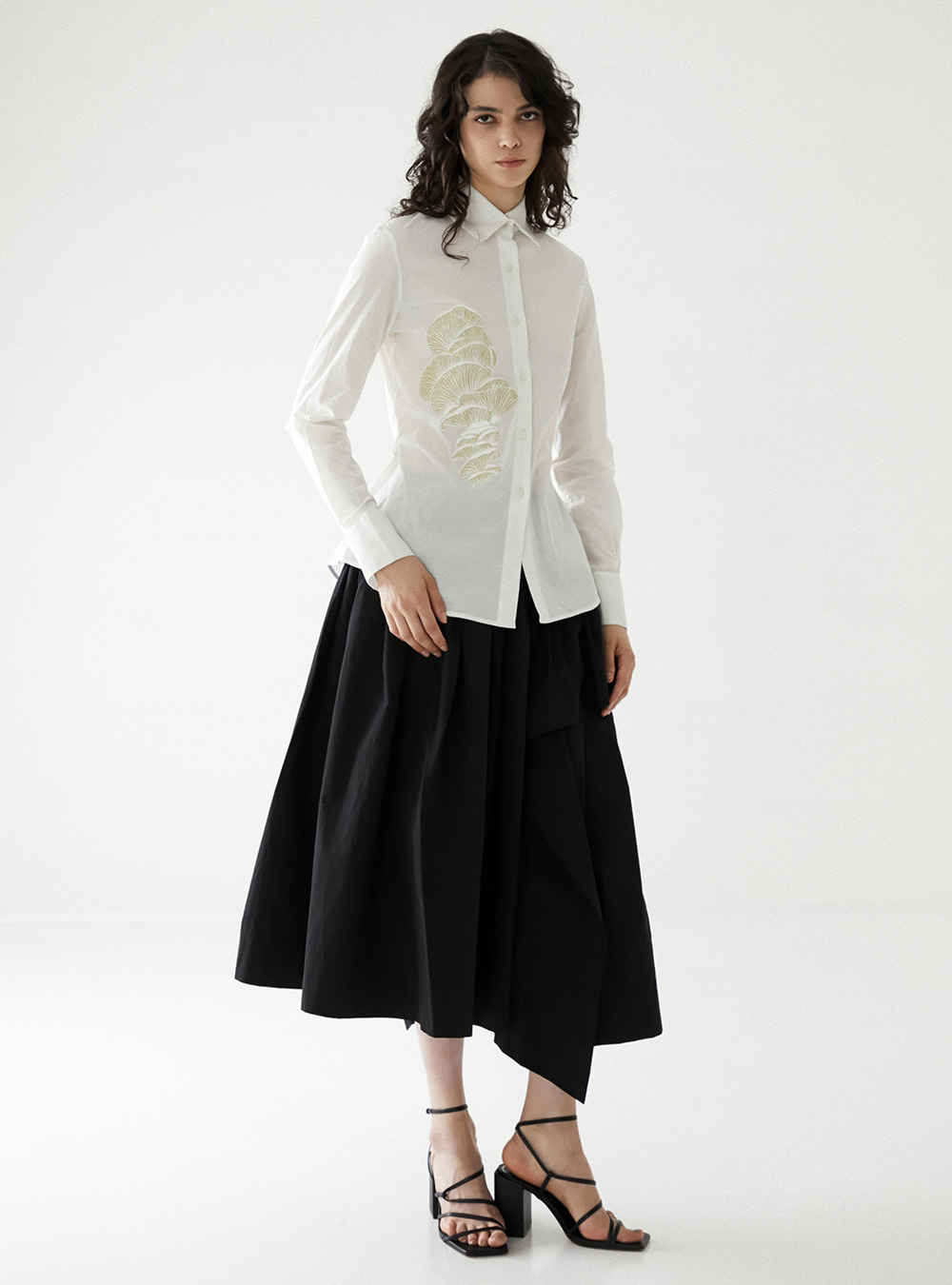 Inspired by the novel and film of the same name — Annihilation, Sean Sheila’s Fall/Winter 2022 collection is aptly titled “Annihilate”. This collection explores the idea of otherwordly mutations and the evolution of natural elements. As such, the pieces in this collection is focused on classic tailoring with gentle deconstructions, and embedded with a unique print along with their signature embroidery imitating Pleurotus mushrooms.