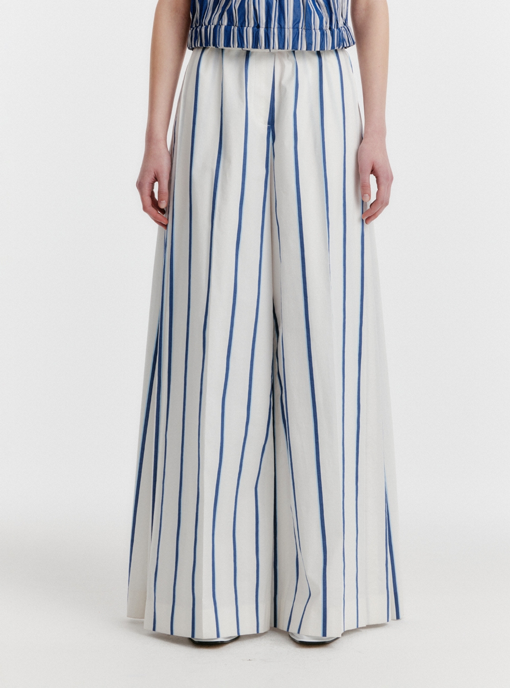 Stay chic and comfortable in the Tucked Stripe Pants. Featuring a classic striped pattern and stylish tucked detail, they make a statement whether paired with a blouse or a casual tee.