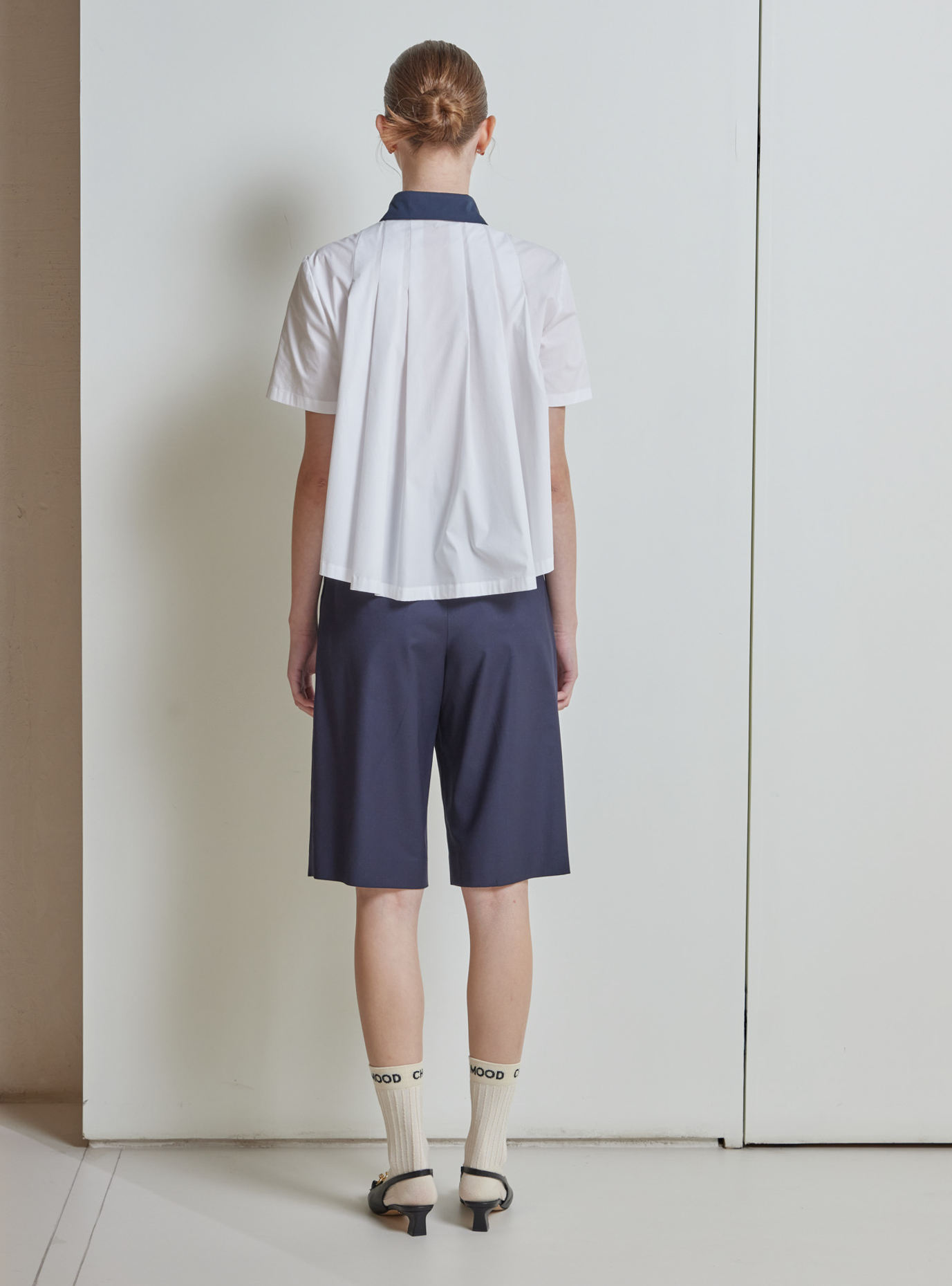 Contemporary style and thoughtful craftsmanship come together in the Navy Waist Detail Bermuda Pants. Cut in a relaxed shape, these high-waisted pants offer a timeless look to your wardrobe. Enjoy a chic, modern look every time you slip them on.