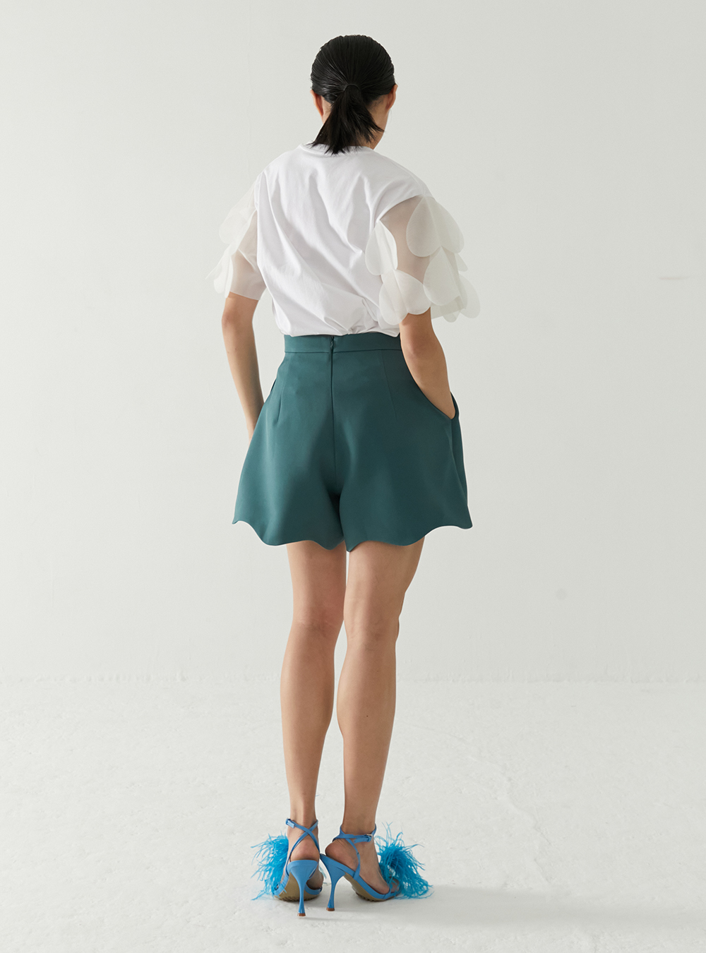 Add a touch of playfulness to your wardrobe with the Wasabi Shorts, featuring a scalloped design and flattering silhouette. Pair it with a simple top for a fun ensemble.