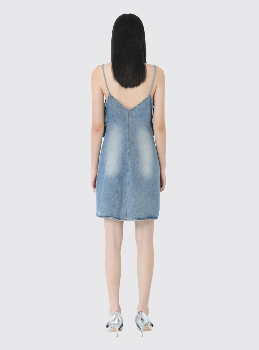 Embrace casual cool with the Washed Denim Moth Dress. The washed denim fabric and unique moth detailing bring a touch of urban edge to this relaxed yet stylish dress. Perfect for those who appreciate a laid-back yet fashion-forward look.