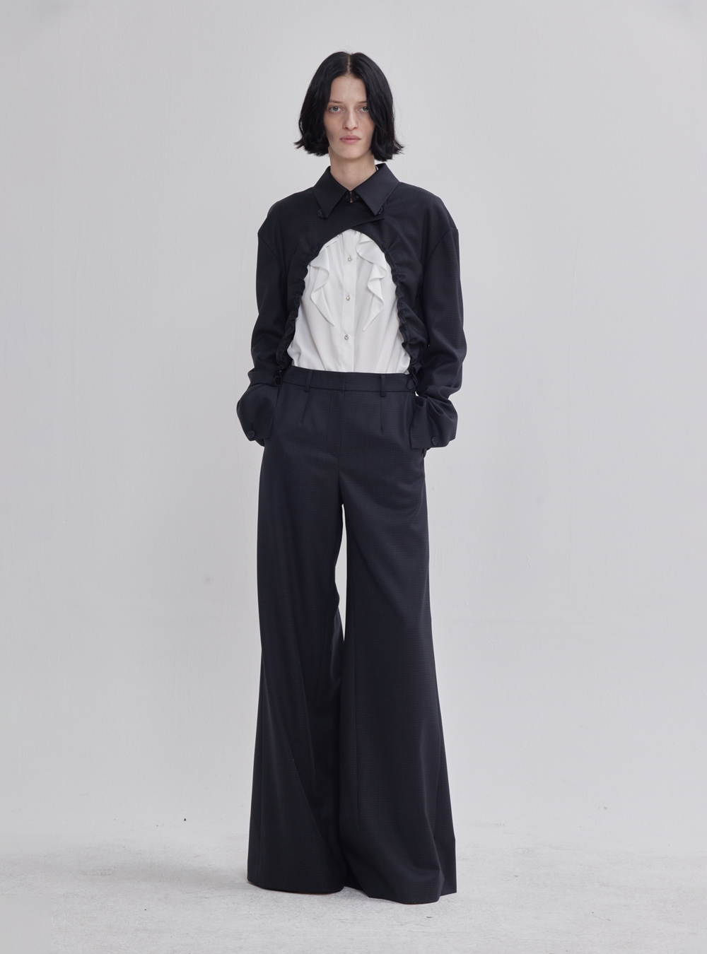 Our Wide Leg Back Pleated Detail Pants in Dark Grey offer a perfect blend of comfort and style. The sophisticated silhouette and dark grey hue is versatile and suitable for both professional and casual settings.