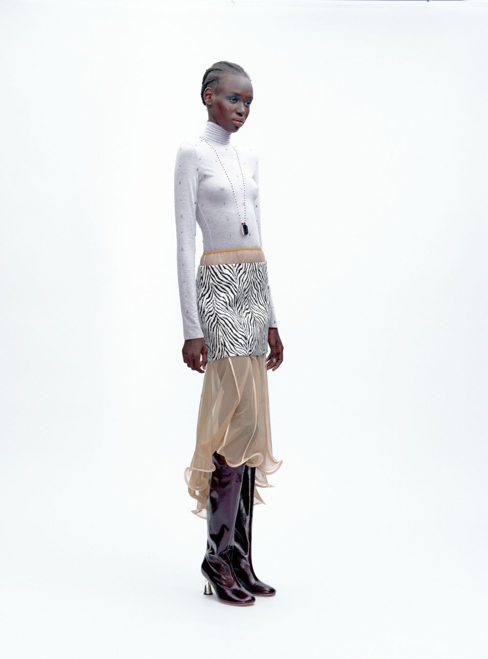 Jacques Wei Fall/Winter 2025 celebrates bold femininity through rich textures and modern glamour. The collection blends luxurious silks, lace, jersey, and intricate embellishment with sculptural tailoring and fluid silhouettes. Animal prints and artistic motifs add drama, balancing structure and sensuality while expressing confidence, individuality, and unapologetic elegance.