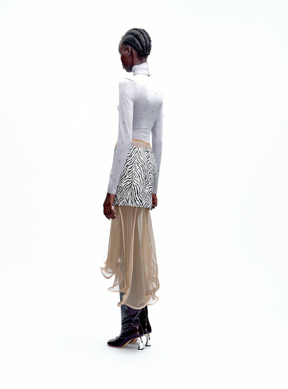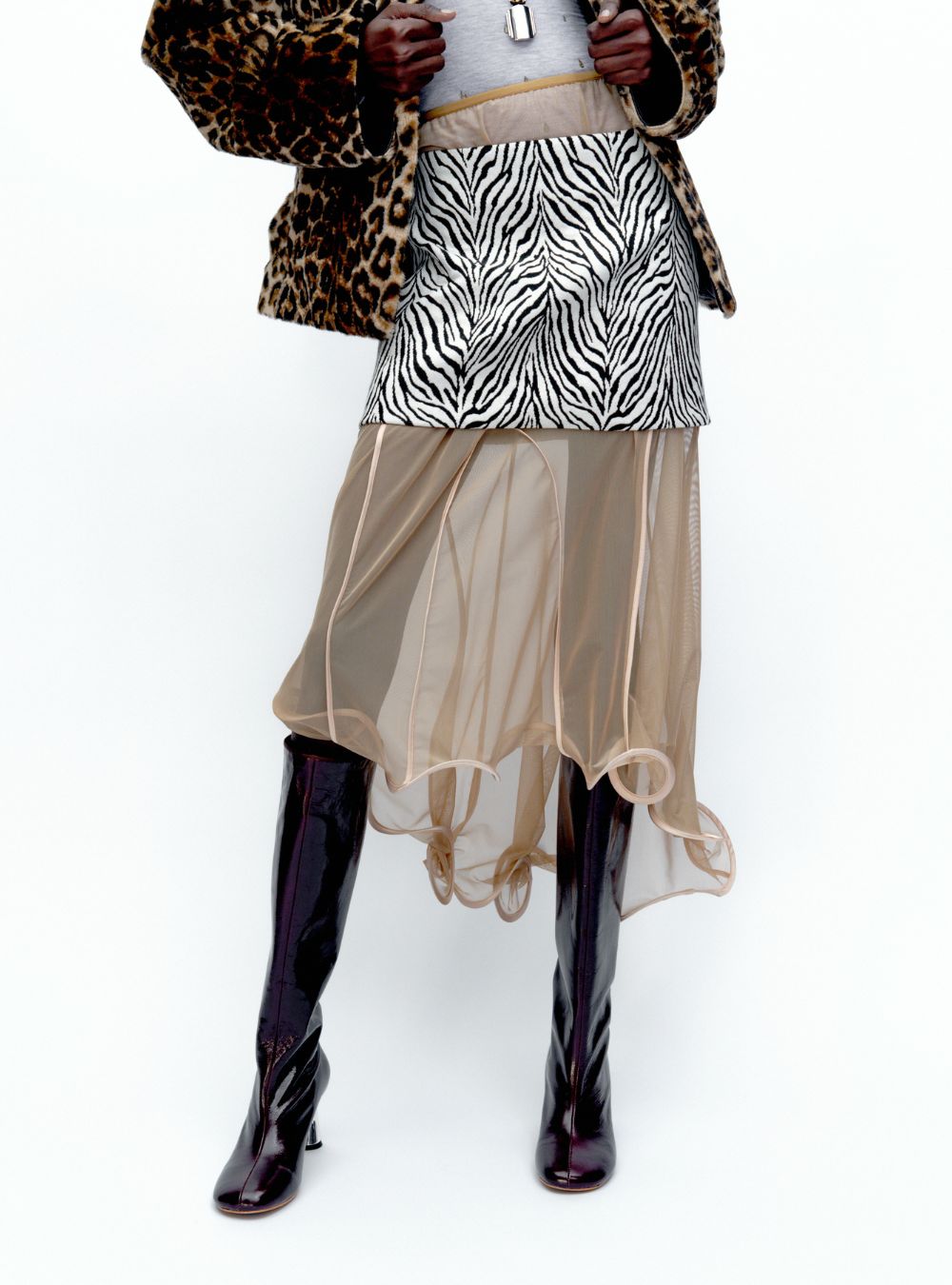 Zebra Print Short Skirt + Sand Color Curled Transparent Skirt