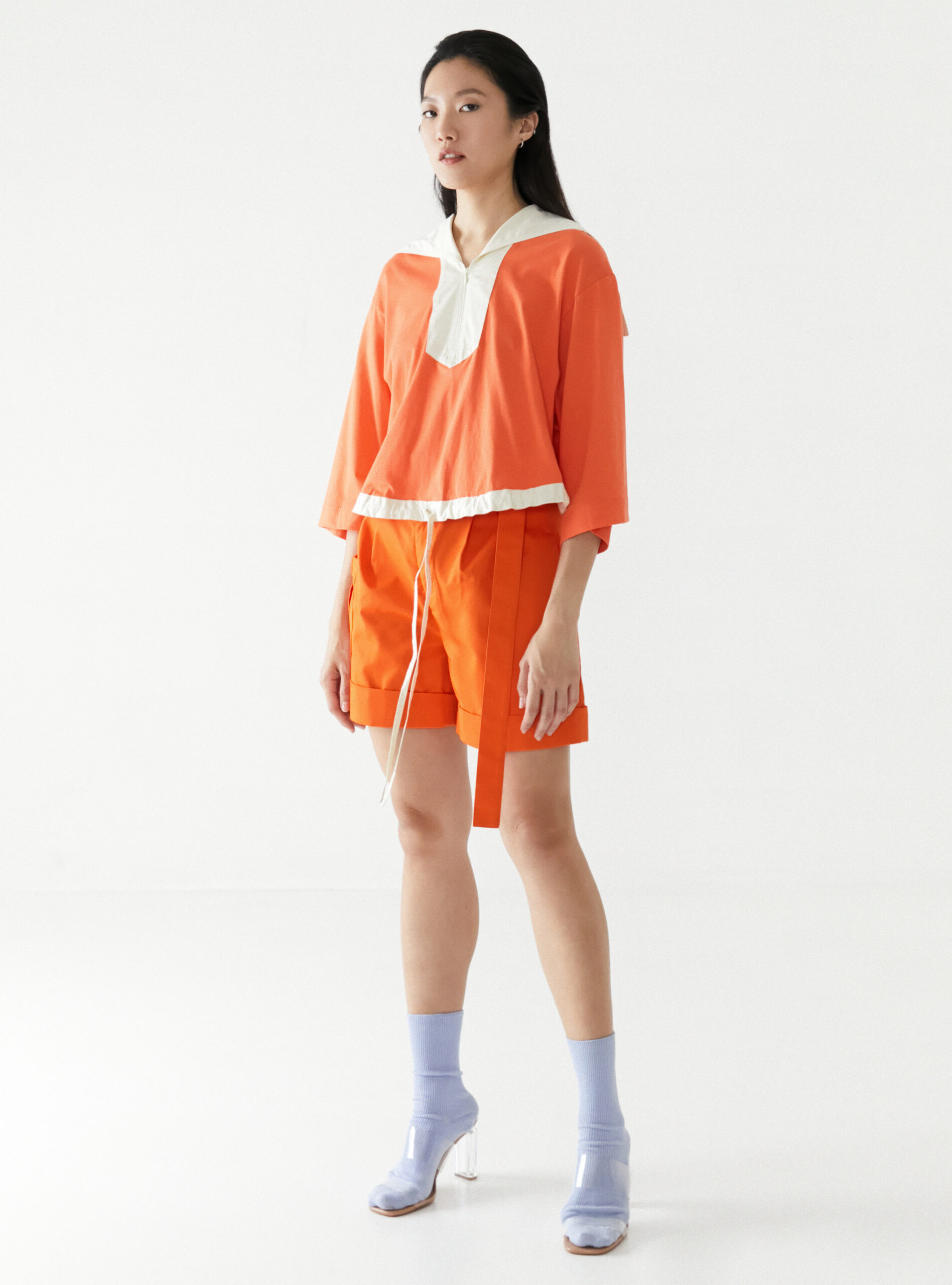 Transcend trends with Zee Top! This stylish top has a relaxed fit with an exaggerated sailor collar and a drawstring around the hem that can be adjusted to your personal preference. Wear yours with jeans or a mini skirt.